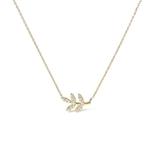 Crafted in 10kt yellow gold, this enchanting pendant necklace features a stunning leaf and branch design, symbolizing growth and harmony. Adorned with 15 round diamonds, totaling 0.095 cttw. On an 18" cable necklace with a spring ring clasp.