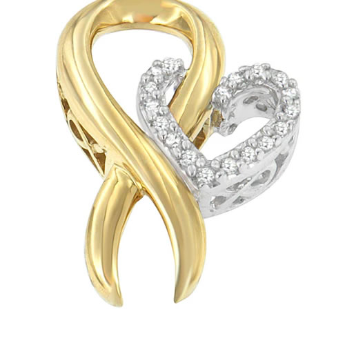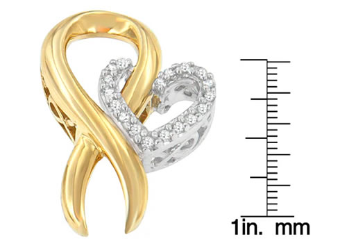 This pendant is crafted of sterling silver and 10kt yellow gold. The lovely heart accent is embellished with 1/10ct shimmering round cut diamonds that makes it look even more graceful. Comes with a sterling silver 18" ball chain. Dimensions 20 x 15 x 20 mm.