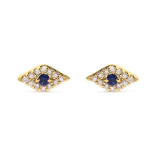 10kt Yellow Gold Blue Sapphire & Diamond Accent Evil Eye Stud Earrings (H-I Color, I1-I2 Clarity)