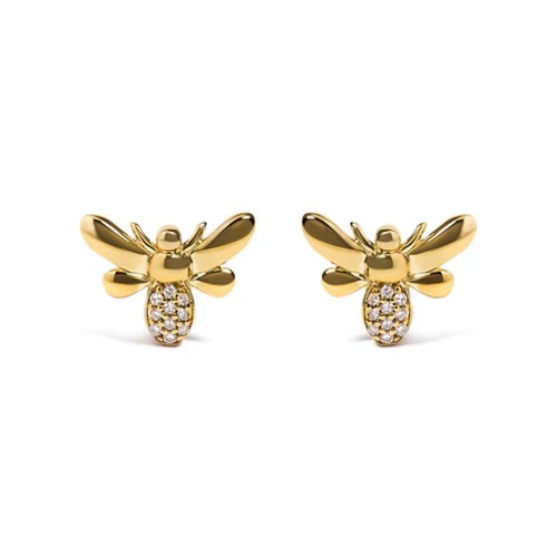 10kt Yellow Gold Diamond Accented Bumble Bee Stud Earring (H-I Color, I1-I2 Clarity)