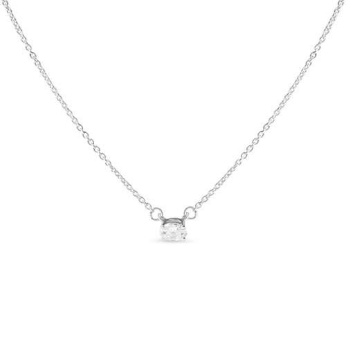 Be the first to review “14kt White Gold 1/4 Cttw Lab Grown Oval Solitaire Diamond East West 18″ Pendant Necklace (G-H Color, VS2-SI1 Clarity)”