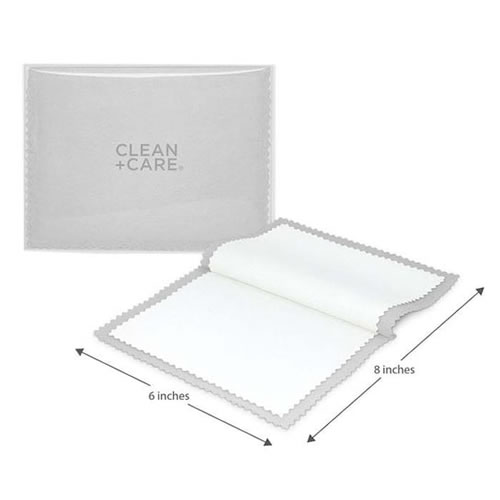 This professional polishing cloth from Clean + Care® quickly cleans and polishes gold, silver and platinum jewelry as well as watches. The inner cloth is treated with an effective cleansing formula that removes oxidation and discoloration. A 100% cotton outer cloth buffs away smudges and fingerprints leaving a bright luster. It works great alone or with a liquid solution for a deep, thorough clean. Dimensions: 6" x 8" (15.2 cm x 30.5 cm)